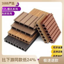 室外木塑地板庭院園林棧道木地板PE共擠地板圓孔pvc塑木戶外地板